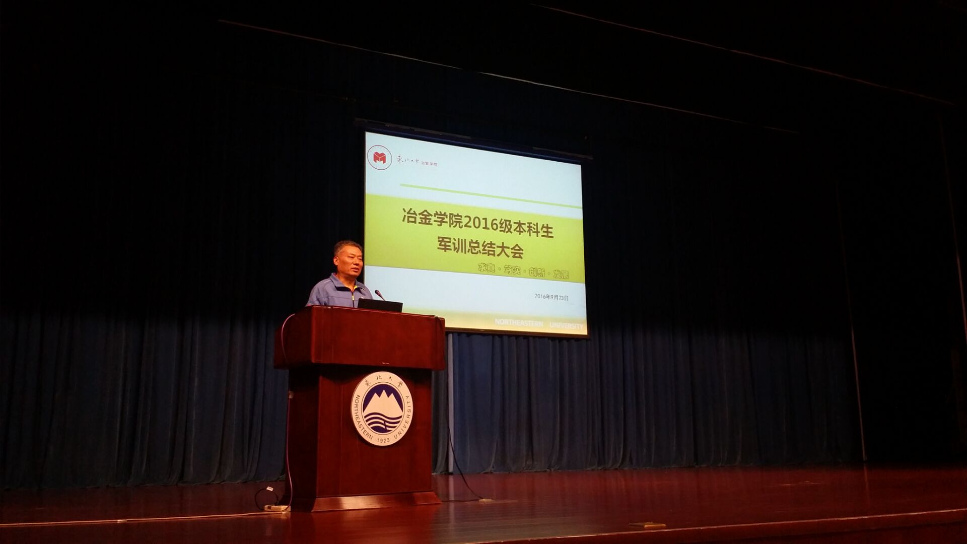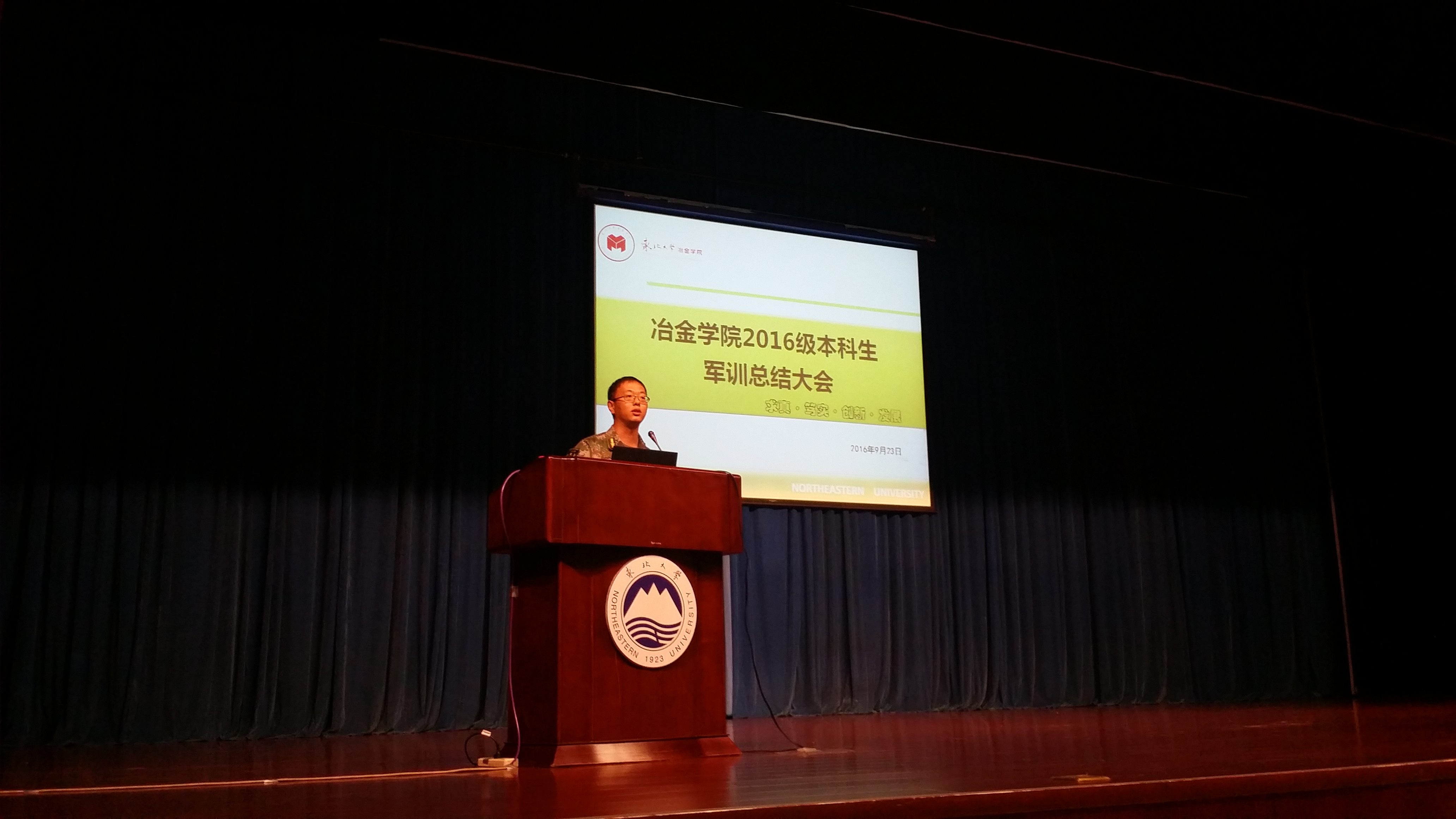 最后,冶金学院党委书记杨东坪做总结讲话,杨书记首先从三个方面向新生讲述了上大学的意义所在,并提出明确要求,希望同学们巩固军训成果,顺利完成从高中到大学的过渡。他特别强调,在大学的学习和生活中,同学们要掌握良好的学习方法,刻苦学习,多读对成长发展有益处的书,关注前沿科学,用丰富的知识武装自己。杨书记要求同学之间要团结互助,养成良好的学习、生活习惯。