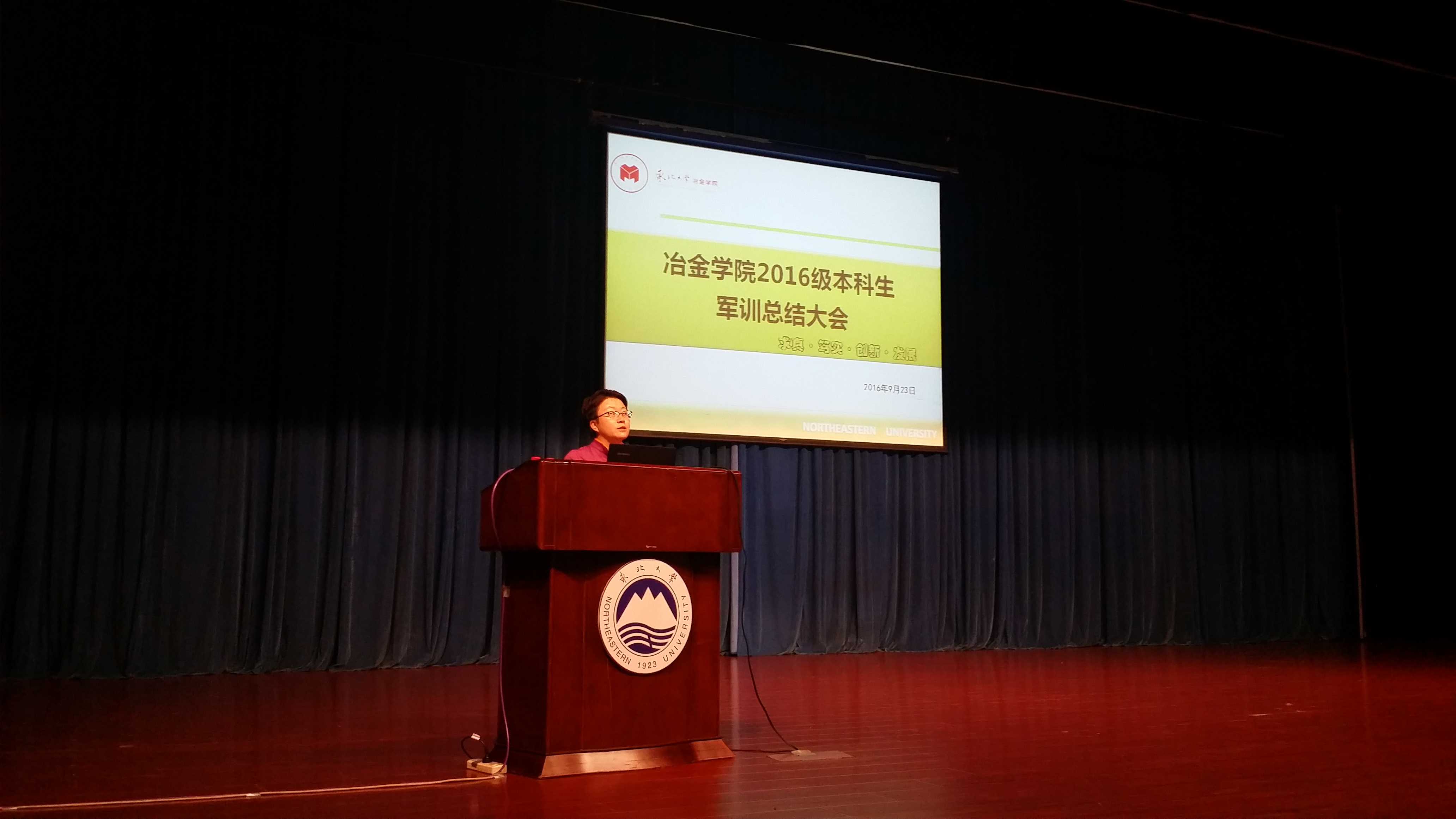 近日,冶金学院2016级本科生军训总结大会在汉卿会堂举行。学院党委书记杨东坪、党委副书记兼副院长吕志娟、军训辅导员、国防教育学院承训教官及2016级全体本科生参加了大会,会议由2016级本科生辅导员李思洋主持。