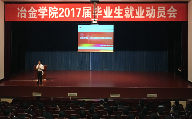 9月30日,冶金学院在汉卿会堂一楼报告厅举办了2017届毕业生就业动员会。院长朱苗勇,学院党委副书记兼副院长吕志娟、学生工作办公室主任赵冬颖、副主任兼2013级本科生辅导员刘茵参加了会议。