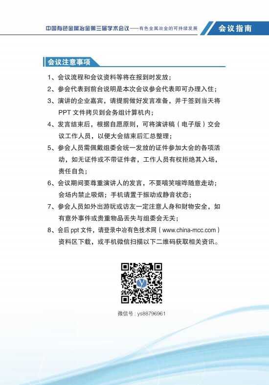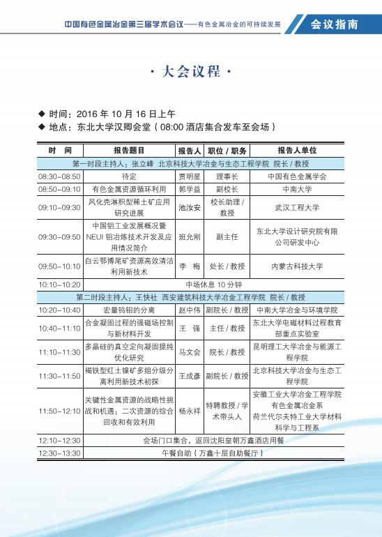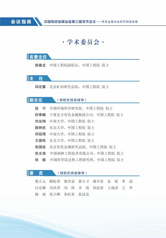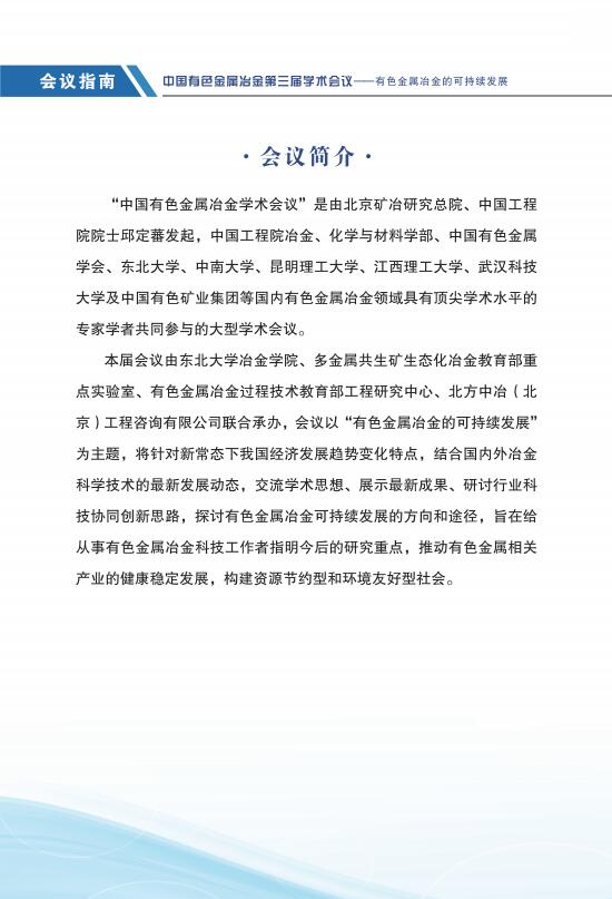 中国有色金属冶金第三届学术会议指南