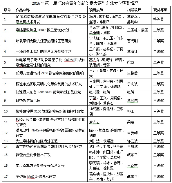 日前,由中国金属学会主办的第二届“冶金青年创新创意大赛”在东北大学落下帷幕。由冶金学院李花兵副教授、姜周华教授指导,冯浩、焦卫超、杨守星、赵思、常朋飞共同完成的作品“加压感应熔炼与加压电渣重熔双联工艺制备高氮钢技术开发”顺利晋级,并代表东北大学参与特等奖答辩。经过激烈比拼,该项作品在高校组排名第一,摘得大赛高校组全国特等奖的桂冠(全国仅两名)。至此,冶金学子成功卫冕,连续两届在该项比赛中拔得头筹(第一届“冶金青年创新创意大赛”中,我院蔡九菊教授指导的由学生刘超、张莹、孙用军、郜峥、刘鹏完成的作品摘得大赛高校组全国唯一特等奖的桂冠。)此外,我校有6项作品荣获全国二等奖,10项作品荣获全国三等奖。
