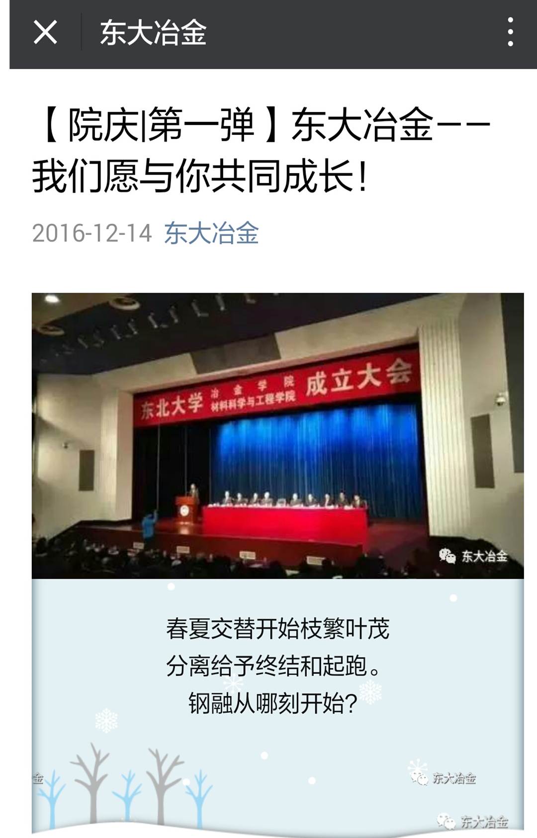 学院官方微信以“东大冶金—我们愿与你共同成长”为题推出了学院成立一周年系列活动。学院同时为各实验室、学生寝室发放了一周年纪念福字。各研究所、办公室、文体俱乐部、学生团体等采取多种形式庆祝学院成立一周年。