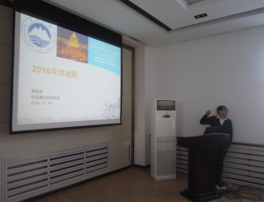 为了做好2016年教职工年度考核工作,根据学校和学院年度考核有关文件和通知要求,轻金属冶金研究所于12月24日在冶金学馆301室举行述职报告会。轻金属冶金研究所全体教师参加述职报告会,报告会由所长高炳亮教授主持。