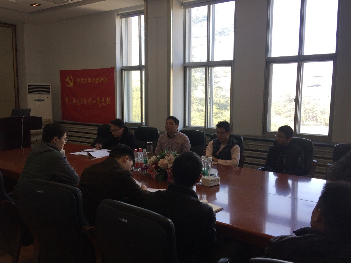 4月12日,冶金学院党委有色金属冶金第一党支部在冶金馆301会议室召开党会。会议由支部书记胡宪伟同志主持,并邀请了学院党委委员、院工会主席谢宏伟同志做了题为《学习“民主集中制”的体会》的报告。