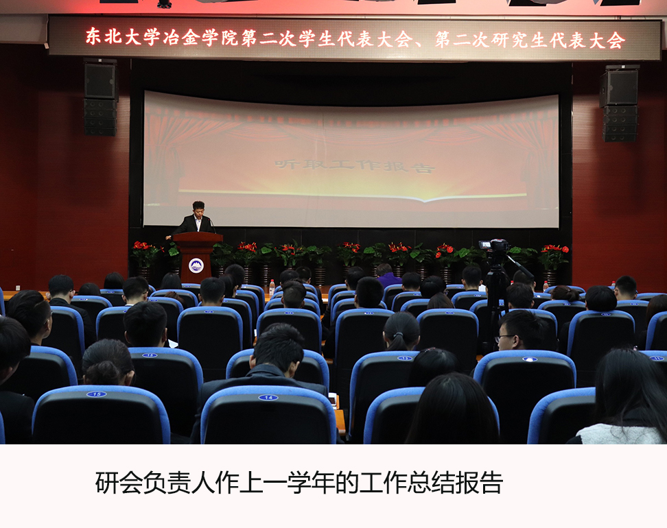 随后冶金学院第二届学生会副主席李劭鹏、冶金学院第一届研究生会主席田雷对上一年工作进行总结。由冶金学院团委学生会副书记李博宇宣读《东北大学冶金学院共青团改革方案》。