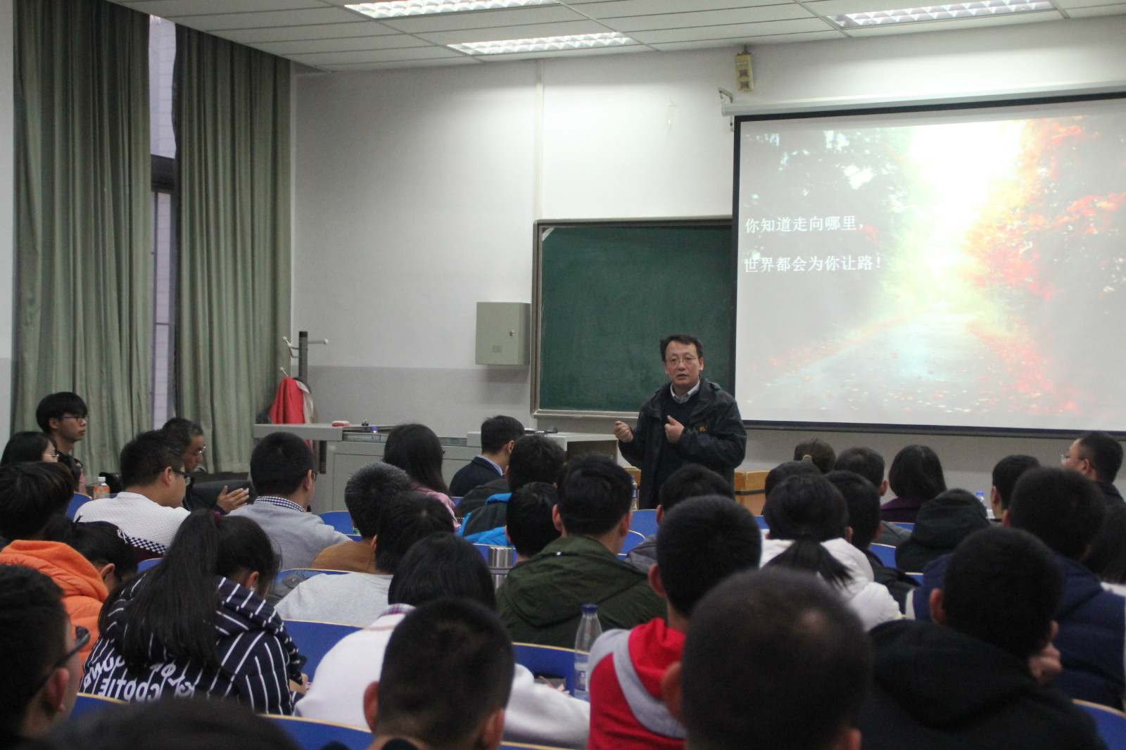 吴明山结合自己的职场经历,指出年龄、学历、能力与沟通四个要素在职场中的重要性,用风趣幽默的语言从热爱工作、与公司共成长、对工作负责、用好心态面对工作、处理职场人际关系和提升执行力这七个方面向在场师生讲述职场成长的七条捷径。吴明山引经据典,结合具体事例告诫年轻人要对工作负责,热爱自己的工作,用工作绩效证明自己。互动环节中,本科生、研究生与参会教师频频互动,踊跃发言,并针对国内光伏行业的发展及其在国际市场中的地位、学历和性别对于求职的影响等方面提出问题,得到了吴明山与邢鹏飞老师的细心解答与专业指导,现场掌声不断。