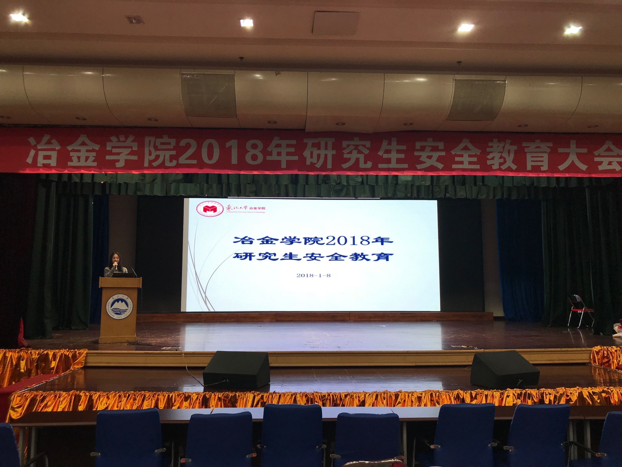 2018年1月8日中午十二点,冶金学院2018年寒假研究生安全教育大会于大学生活动中心多功能报告厅举行。冶金学院全体在校研究生参加,冶金学院研究生辅导员张天行在大会上作安全教育。