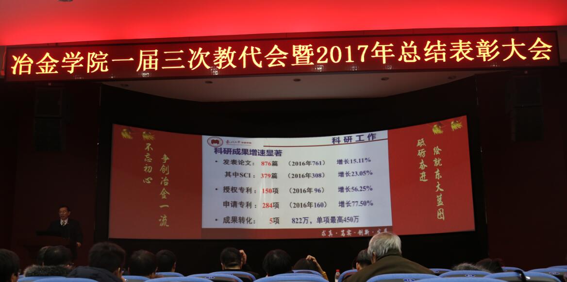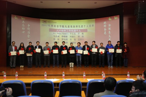 之后,学院副院长王梅宣读了《关于表彰2017年度冶金学院先进集体和优秀个人的决定》,共8个集体和62名教工受到了表彰。学院领导为获奖的集体和个人颁发了证书。最后,大会在激昂的校歌声中圆满落下帷幕。
