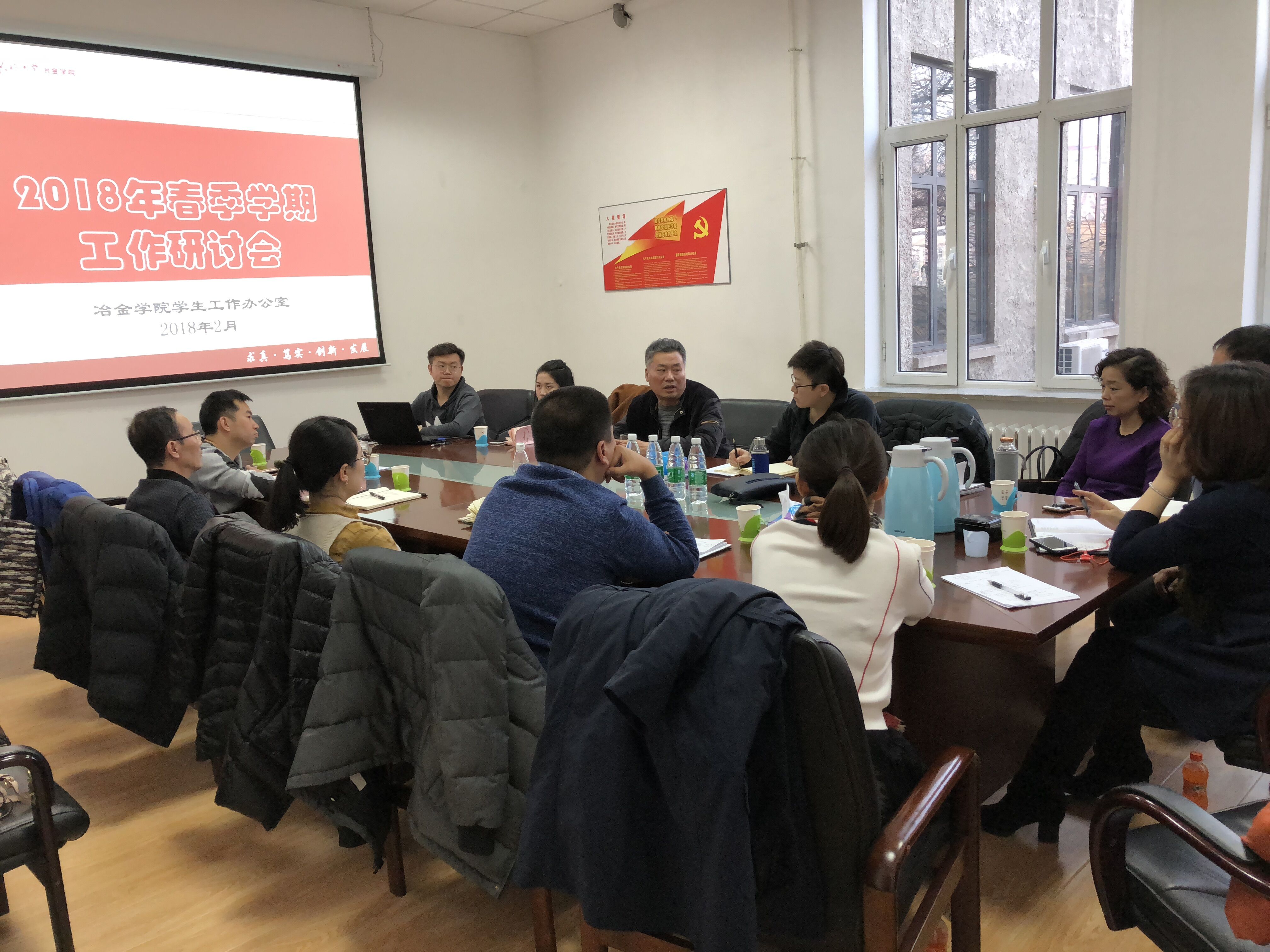 2018年2月27日,冶金学院学生工作办公室在冶金馆310会议室召开了新学期工作研讨会。学院党委党委书记杨东坪,党委副书记兼副院长吕志娟,全体学生工作干部参加会议。