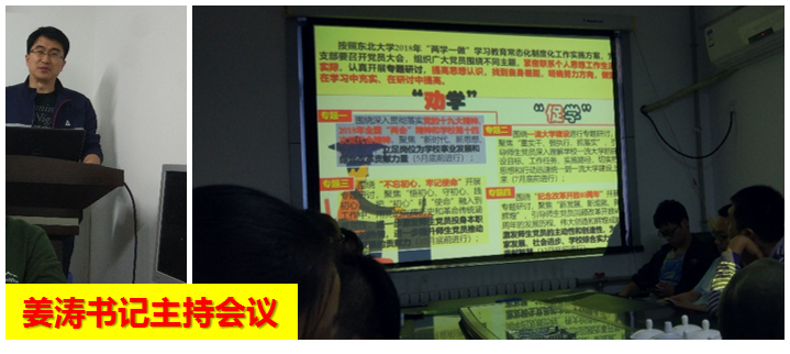 为深入推进“两学一做”学习教育常态化制度化工作,按照校院两级党委工作安排,5月30日,冶金学院资源与环境系党支部23名党员在钢铁楼309B召开党员大会,开展聚焦“新时代、新思想、新作为”的专题研讨,联系个人思想工作生活实际进行科研经验的分享与交流,支部书记姜涛主持会议。