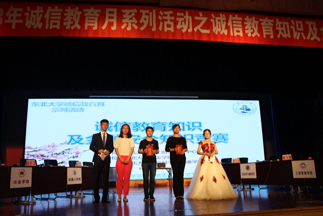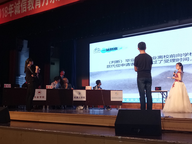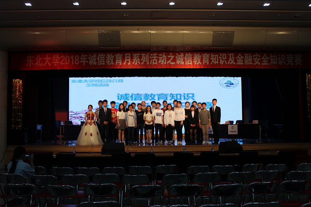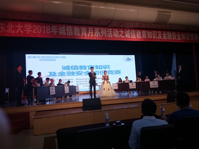 2018年5月31日晚7点,东北大学“一五一十”思政文化育人一体化平台建设项目——诚信教育月系列活动之诚信教育及金融安全识竞赛总决赛,在学校大活多功能厅拉开战幕。