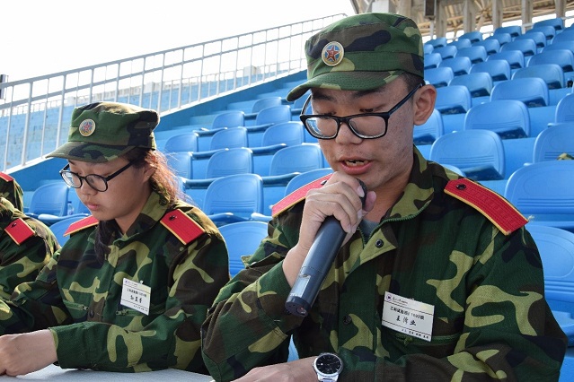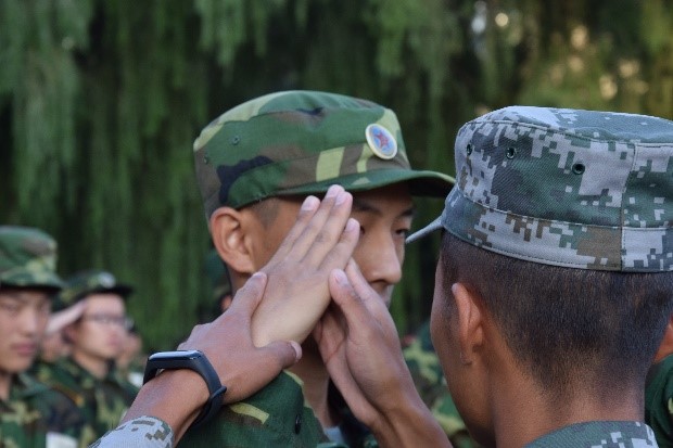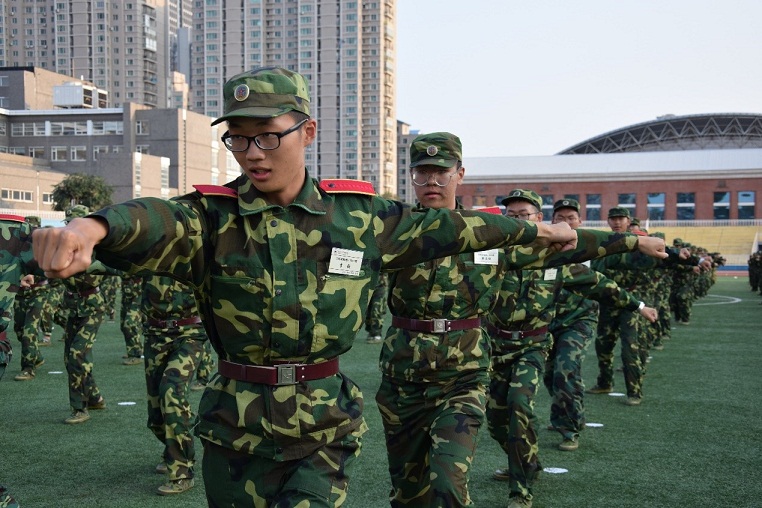 慷慨自古英雄色,甘洒热血写青春。刺杀操方阵的精进,是由随意散漫到锋锐集中的过程。飒爽英姿声震天,不惧艰辛尽汗颜。十五天军训下来,冶金精神已成为他们心头的火焰,火焰不熄,精神不灭。