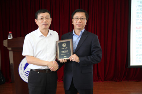 冶金学院院长朱苗勇向余艾冰院士颁发了东北大学“靳树梁讲座”第三期纪念奖牌。