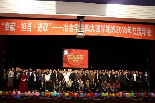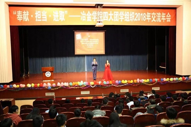 11月22日18时30分,“奉献·担当·进取”--冶金学院四大团学组织2018年交流年会在汉卿会堂蔡冠深报告厅顺利召开,冶金学院党委副书记兼副院长吕志娟以及各年级辅导员参加本次大会。
