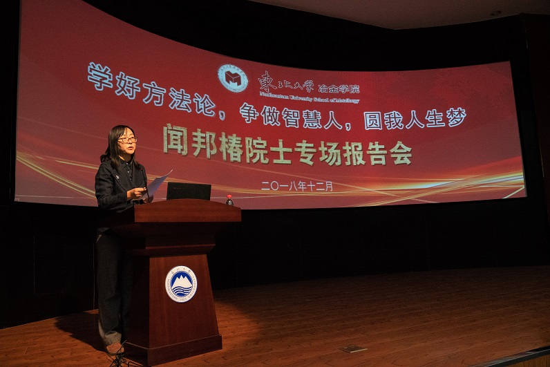 12月4日晚,闻邦椿院士应邀为冶金学院300余名师生作题为“学好方法论,争做智慧人,圆我人生梦”的专题报告。冶金学院党委书记杨东坪、党委副书记兼副院长吕志娟出席报告会,学院部分专任教师以及全体学生工作干部参加活动。会议由冶金学院副院长王梅主持。