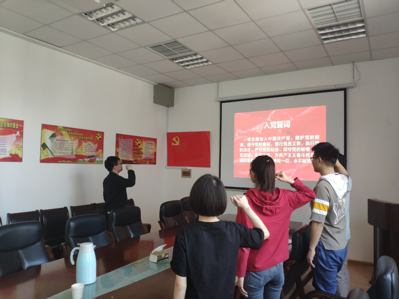 最后,在支部书记刘吉利的领誓下,全体党员面向党旗,重温了入党誓词。通过开展这样的活动,旨在进一步坚定支部党员同志的理想信念,要不忘初心、牢记使命,强化党员意识,永葆共产党人政治本色。在重温入党誓词后,支部党员又开展了学习讨论活动。