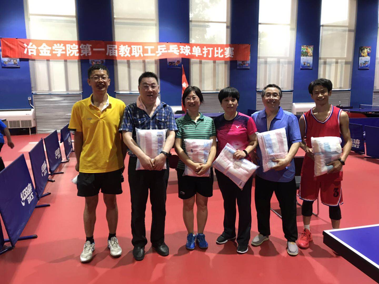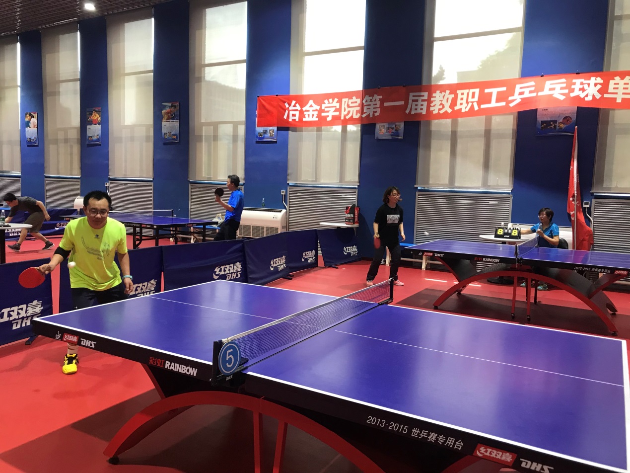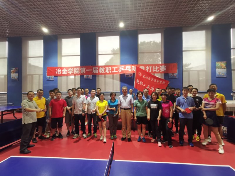 6月5日,由冶金学院工会主办、学院教职工乒乓球俱乐部承办的第一届教职工乒乓球单打分级赛在东北大学羽乒馆举行,来自学院和重点实验室的40余名教工参加了比赛。