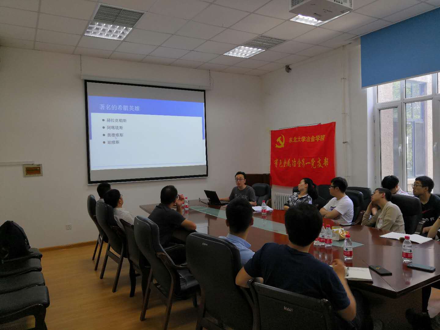 近日,冶金学院有色金属冶金系第一党支部在冶金馆310会议室开展“读书日”系列活动,支部书记胡宪伟分享了关于“希腊古典神话故事”的读书心得。