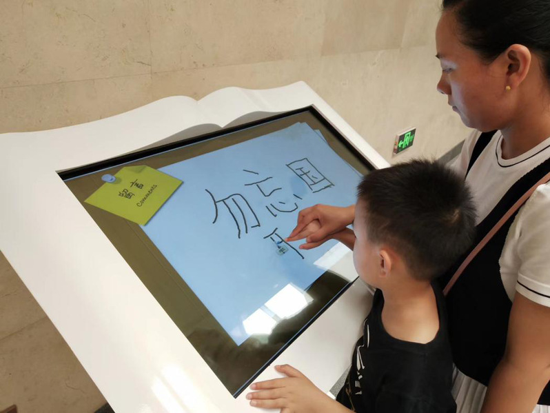 在参观“九·一八”历史博物馆时,看到一个妈妈正在教自己的孩子写 “勿忘国耻”四个字,令同学们感触颇深。