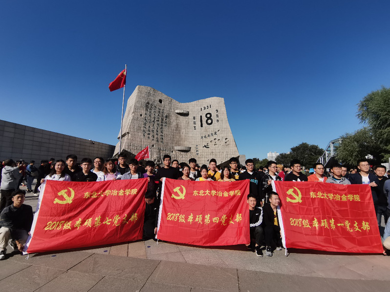 2019年9月18日,东北大学冶金学院2018级本硕第一、四、七党支部联合开展“勿忘国耻,警钟长鸣”——组织党员参观“九一八”历史博物馆活动。