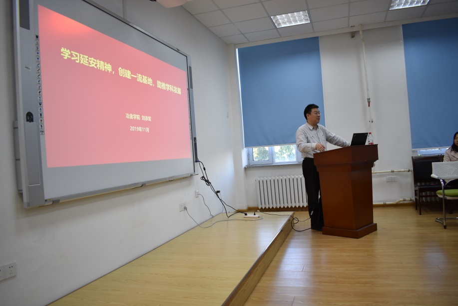 11月8日,题为“学习延安精神,创建一流基地,助推学科发展”的党课学习活动在冶金馆311B会议室召开,由多金属共生矿生态化冶金教育部重点实验室副主任兼冶金学院副院长刘承军教授主讲,钢铁冶金第一党支部、原热能工程系党支部和冶金物理化学系党支部的教师党员和博士研究生党员参与了此次党课学习。