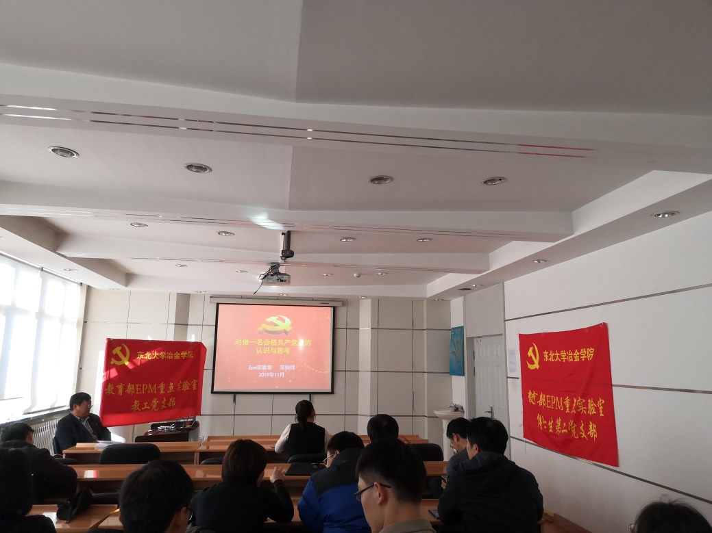 11月13日,教育部EPM实验室教工党支部和博士生第二党支部联合邀请材料电磁过程研究教育部重点实验室党总支书记、实验室副主任范柏祥和实验室副主任李国建为支部党员讲授了意义深刻的党课。