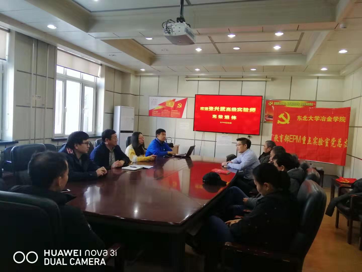 11月19日,材料电磁过程研究教育部重点实验室领导和部分教工代表为下个月即将从工作岗位上退休的高级实验室张兴武举行了别开生面的欢送仪式。实验室副主任、工会主席、总支委员、教工党支部委员、实验室技术队伍成员和老同志代表出席会议。座谈会由实验室党总支书记范柏祥主持。