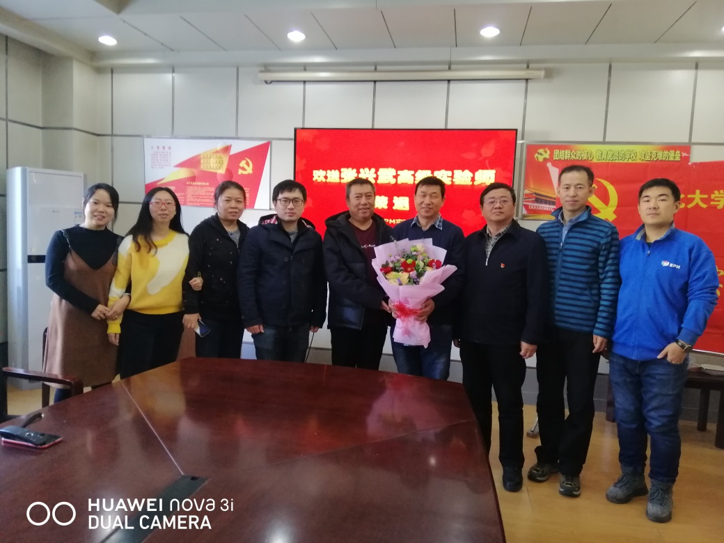 范柏祥总结发言并对实验室在职教工提出殷切希望,希望大家不忘初心,牢记使命,对自己的工作负责,对学校发展负责,对师生安全负责,用心去思考,落实在行动上,完成好本职工作。为我们学校双一流大学建设服务做出我们应有的努力!会议最后,教工党支部为张兴武同志赠送了书籍和鲜花,参加座谈会的老师们一起合影留念,共同记录下这难忘的时刻。