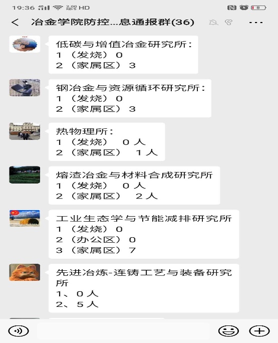严格执行“日报告、零报告”制度,建立相关数据库,精准摸排、统计上报全体师生健康情况、离沈返沈情况、近期与相关地区和人员接触情况、隔离和医学观察情况、家属区住宿和到校办公等情况。随后,每日通过工作微信群提醒全员进行“每日网络健康信息填报”,在职教职工239人,博士后、劳务派遣、返聘人员等19人全部通过网络进行日报告。