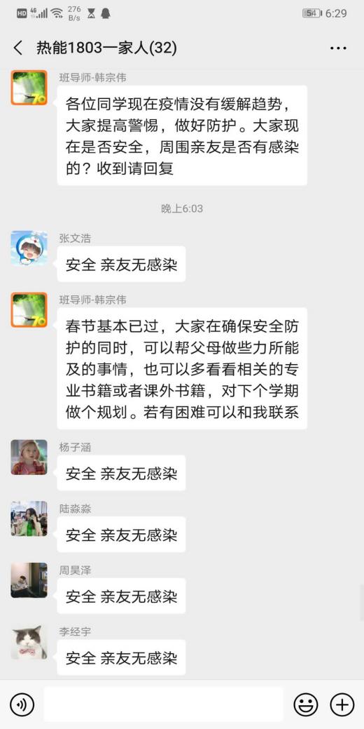 师生党员纷纷行动起来,在加强个人防护的基础上,积极向亲友科普疫情防控知识,主动关心湖北籍的同事同学。学生党员张明哲、陆毅、鲁现航、王昕、由焕、闫天一、王子坤等志愿投身小区、村镇的疫情防控一线,开展人员登记、体温测量、酒精消毒、防疫宣传等工作。2018级博士生党员陈士富不仅主动在村里的党员先锋岗工作,更自发给疫情防控人员送去自家鸡蛋累计2000余枚。