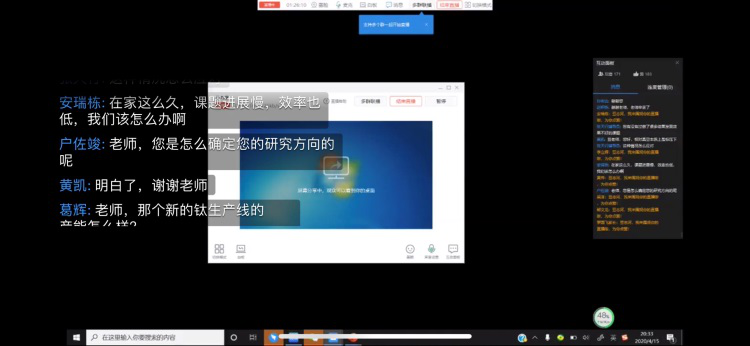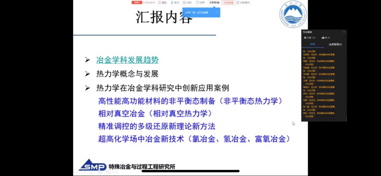 本次“研师讲坛”线上学术讲座活动旨在引导同学们思考冶金学科的未来发展趋势,加强同学们在传统学科领域的创新性思维,合理规划自己的研究方向。该活动响应“停课不停学”号召,在充分调动大家学习热情的同时,有针对性地解决同学们居家科研遇到的问题,可谓是指点迷津的宝贵一课。