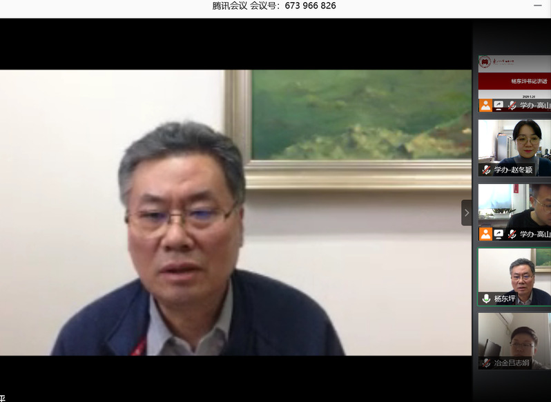 最后,杨东坪书记从全方位关心、关怀、关爱学生,切实帮助学生解决实际问题,充分发挥党员骨干、学生干部力量,教育学生居家做好文化传承、孝敬父母,及时了解学生网课、毕业论文进行状态,引导学生读一本好书等六个方面进行工作部署。对于毕业生年级,要培养学生母校情怀,做好毕业生的择业工作,与学院教学办等其他部门做好配合,为学生返校做好充分准备;大三年级要创新班导师工作载体,做好团队班导师工作,加强班导师与学生间的一对一网上交流,更要扎实做好学院第一届本博贯通班的班导师工作,在充分肯定班导师工作成效的同时,对班导师工作提出了新的希望。