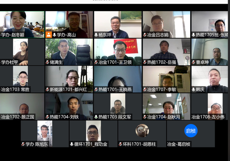 5月26日,冶金学院分别召开2016级、2017级班导师工作网络视频会。冶金学院党委书记杨东坪,党委副书记、纪委书记储满生,党委副书记兼副院长吕志娟,2016级、2017级全体班导师和相应年级学生工作干部参加会议。会议由冶金学院学办主任赵冬颖主持。