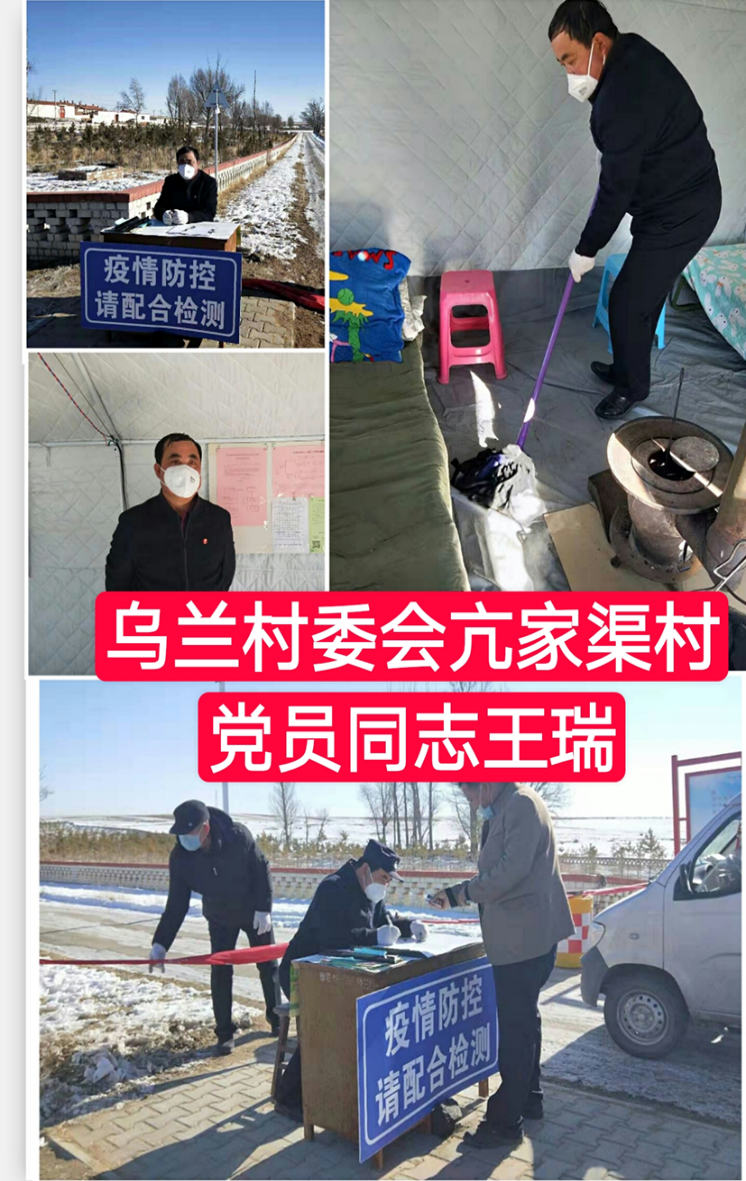亢家渠村党员同志王瑞,从2月1日起,他主动请战,不分昼夜,始终坚守在值班点。他说:“我作为村里相对年轻的,在这个时刻就要挺身而出,更何况我是一名党员,抗击疫情是全国的事,国家遇到困难,我就要站到前线。我背后的村里,都是我的乡亲父老,我坚守岗位,也是在守护我的乡亲父老。”