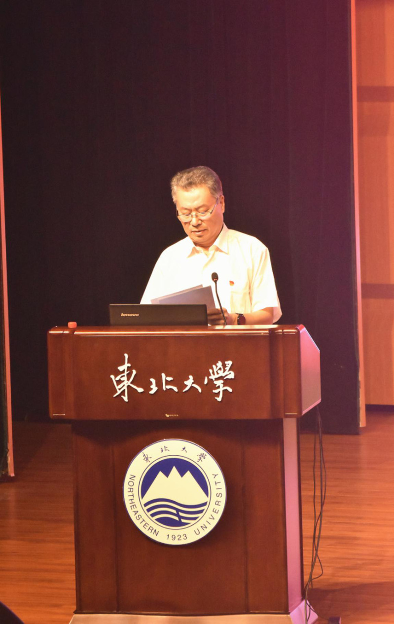 刘承军介绍了东北大学的历史,并从学科建设、师资队伍、基层组织、科研基地、建设成效和发展目标等方面,全面介绍了冶金学院的相关情况。刘承军强调,冶金强则制造强,制造强则国家强,并勉励同学们“不忘东大初心,牢记冶金使命”。