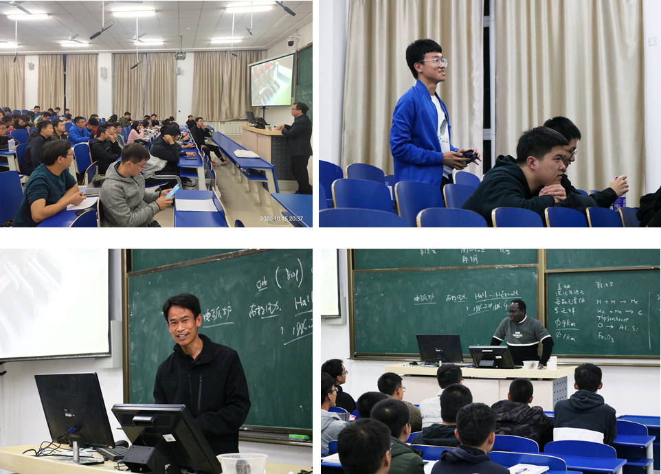 值得注意的是,有色金属冶金第一工会小组的Mouhamadou. A. Diop副教授(法国国籍,东北大学全职教师)也参与了此次活动,他表示很热爱教学工作,欢迎、鼓励学生通过邮件、电话、微信等方式联系他,甚至直接到他办公室面对面交流。最后,针对保研考研、科技竞赛和职业规划等学生们关心的问题,展开了互动交流。彭建平老师介绍了东北大学冶金学院的保研条件与政策,引导学生勤奋学习,争取获得优秀的学业成绩;刘风国老师鼓励学生联系班导师或者研究所的教师参加大学生创新创业训练计划、节能减排、冶金科技竞赛、挑战杯等课外活动,培养动手能力、独立思考和创新意识。