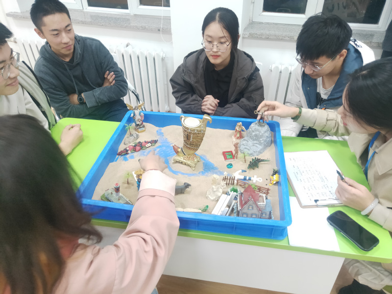 11月16日,冶金学院举办第四期心理艺术表达工作坊活动。活动在冶金馆311A室开展,沈阳斐乐蒙教育咨询有限公司资深咨询师刘枢、邵蕊、杨婷婷、林贵琴等四位专家受邀,作主题为“团体沙盘”的心理辅导,近20名本科生参与活动。