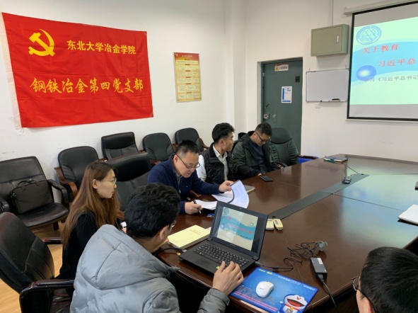 钢铁冶金第四党支部按照校党委、院党委的工作部署,深入学习贯彻宣传习近平总书记教师节重要寄语精神和《习近平总书记教育重要论述讲义》。11月20日,党支部在冶金馆206B会议室邀请对接的学院党委委员陈建设为师生党员以《关于教育——习近平总书记这样思考与嘱托》为主题讲授党课。