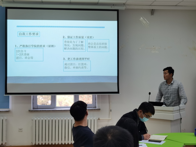 最后,学院专职辅导员针对本年级兼职辅导员工作进行了简要介绍,对工作年级全体兼职辅导员所开展的具体工作予以肯定,并提出新要求。