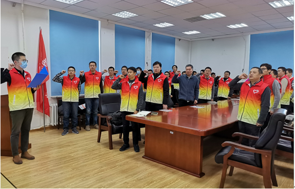 学院工会主席谢宏伟宣布教师志愿者协会成立并向志愿者代表、轻金属冶金研究所教师彭建平授旗。热能工程与制冷技术研究所教师段文军作为志愿者代表向大家宣读了《教师志愿者协会章程》,《章程》涵盖总则、目标与任务、会员管理、组织机构、经费管理、附则等六章。志愿者代表、钢冶金与资源循环研究所教师赵青带领大家进行了集体宣誓,誓词中体现了“奉献、友爱、互助、进步”的志愿精神和新时代高校教师的责任与担当,彰显了“爱校、爱乡、爱国、爱人类”的大爱情怀,为东大代言、为时代添彩!