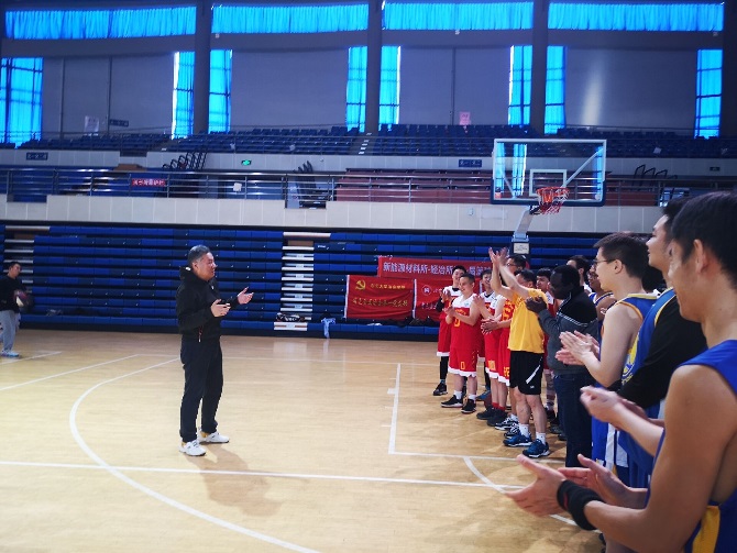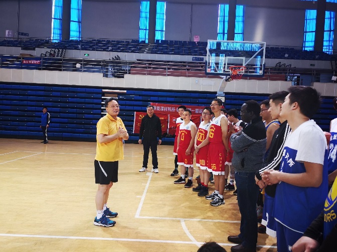 本次篮球友谊赛得到了学院党委的大力支持,党委书记杨东坪来到比赛现场为师生加油打气。新能源系系主任邢鹏飞教授鼓励大家要养成终身运动意识。高波教授和彭建平副教授为大家讲解比赛规则。本场比赛分三个阶段:第一阶段为老师组比赛,先打进10球一方获胜。第二阶段为学生组比赛,先打进10球一方获胜。第三阶段为师生赛,比赛分四节,每节十分钟,最终比分领先队伍获胜。