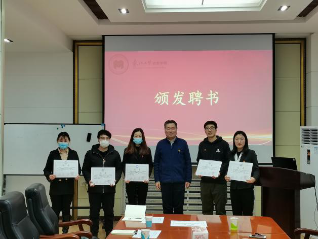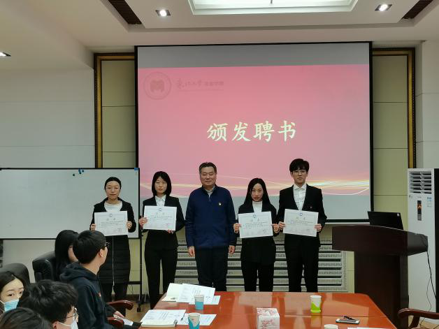 会上,杨东坪为学院9名兼职辅导员颁发了聘书。杨东坪希望兼职辅导员能够坚定政治立场和理想信念,协助做好学生的思想政治教育工作;内心阳光丰盈,做好自身学业和学生工作的平衡;不断深入学生班级和寝室,扎实开展学生的日常管理工作;与专职辅导员常交流、多学习、共研究,积极参与到学生成长的各个环节,全面服务好学生的成长成才。