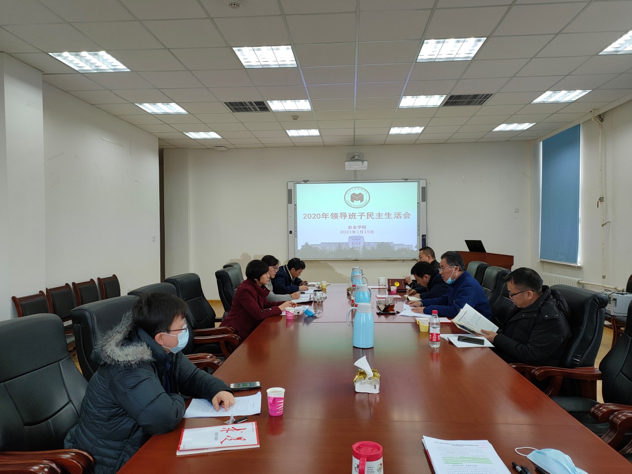 1月15日,冶金学院在冶金馆311B召开2020年度领导班子民主生活会。学院领导班子成员全体出席,党外领导班子成员、无党派人士石忠宁副院长列席。会议由学院党委书记杨东坪主持。