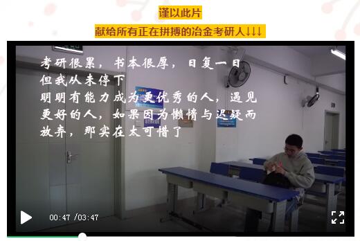20天:考研微视频献给正在拼搏的冶金考研人,每一天为明天,每一份耕耘都将收获希望与欣喜。