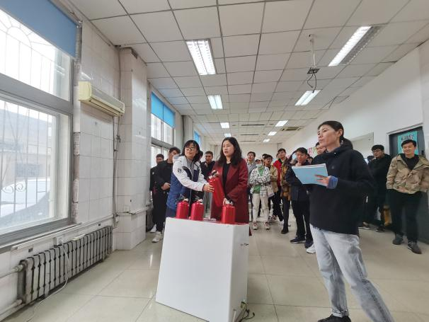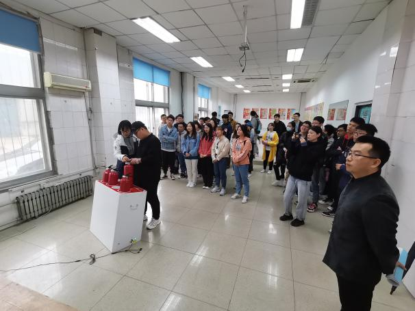 演练环节,后勤服务中心工作人员对研究生进行消防培训。通过视频学习火灾类型、灭火器分类、灭火器使用方法、灭火器注意事项等消防知识。之后,学生逐一进行模拟演练,熟悉灭火器的使用方法。