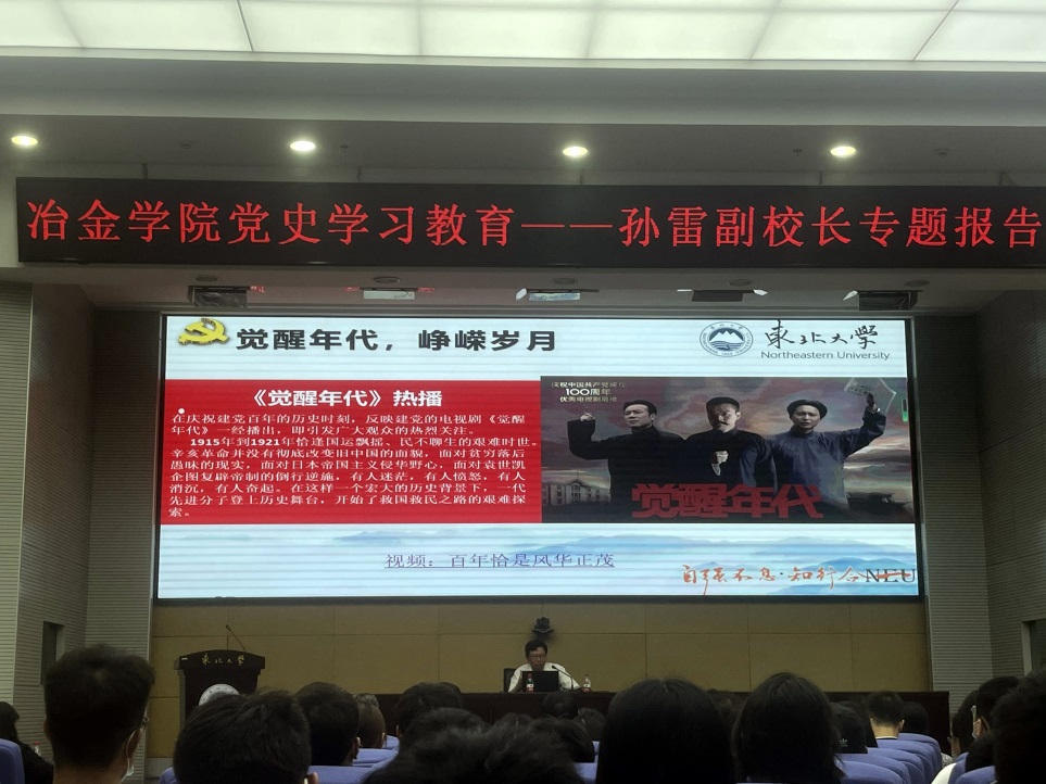 6月9日,副校长孙雷应邀为冶金学院师生讲授党史学习教育专题党课《初心不忘忆党史 传统赓续育新人》,报告会在主楼822举行,冶金学院近170名师生党员、入党积极分子参会,由学院党委书记杨东坪主持。