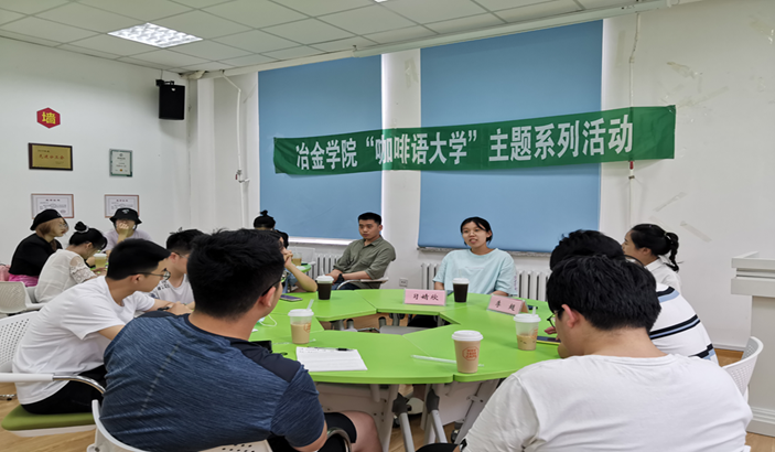 6月14日中午,“咖啡语大学”主题系列活动第三期升学篇在冶金学馆311A举办。本次活动邀请冶金工程冯磊、王焱;能源与动力工程李超、习婧欣四位2017级优秀的学长学姐与大一同学们一起畅谈升学规划与经验。2020级本科生兼职辅导员杨岚婷主持活动。