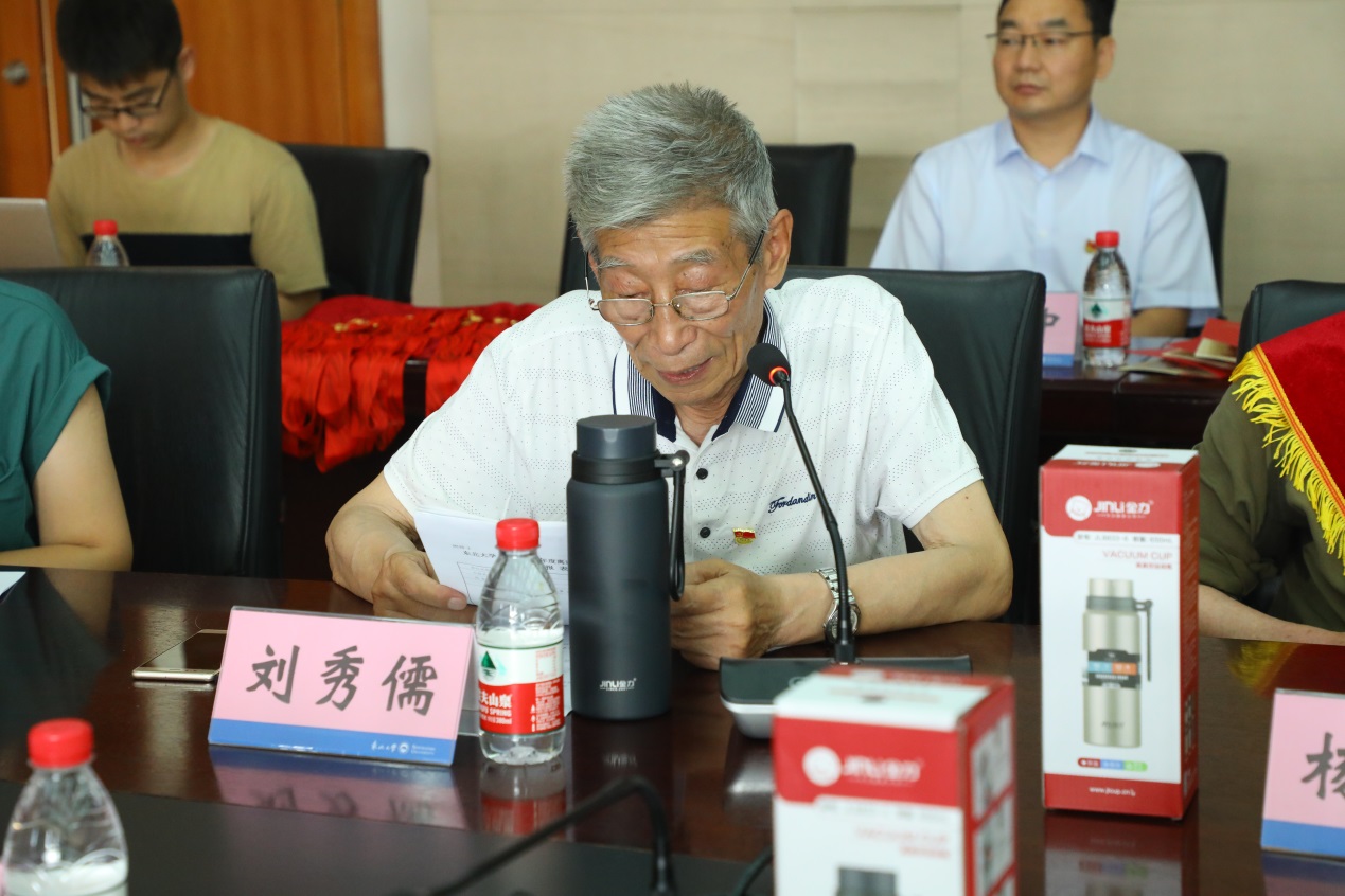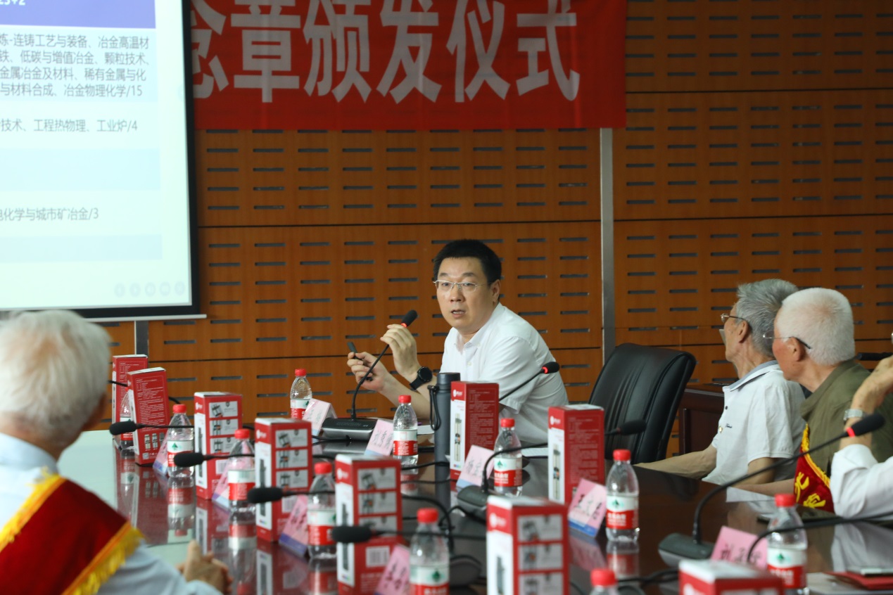 首先,离退休冶金分会会长刘秀儒从学习、办实事两个方面介绍了冶金学院离退休分会开展工作的情况,以及“光荣在党50年”纪念章和寓意“温暖人心、饮水思源”的纪念水杯的情况,并代表退休的老党员们对学院的支持和关怀表示感谢。