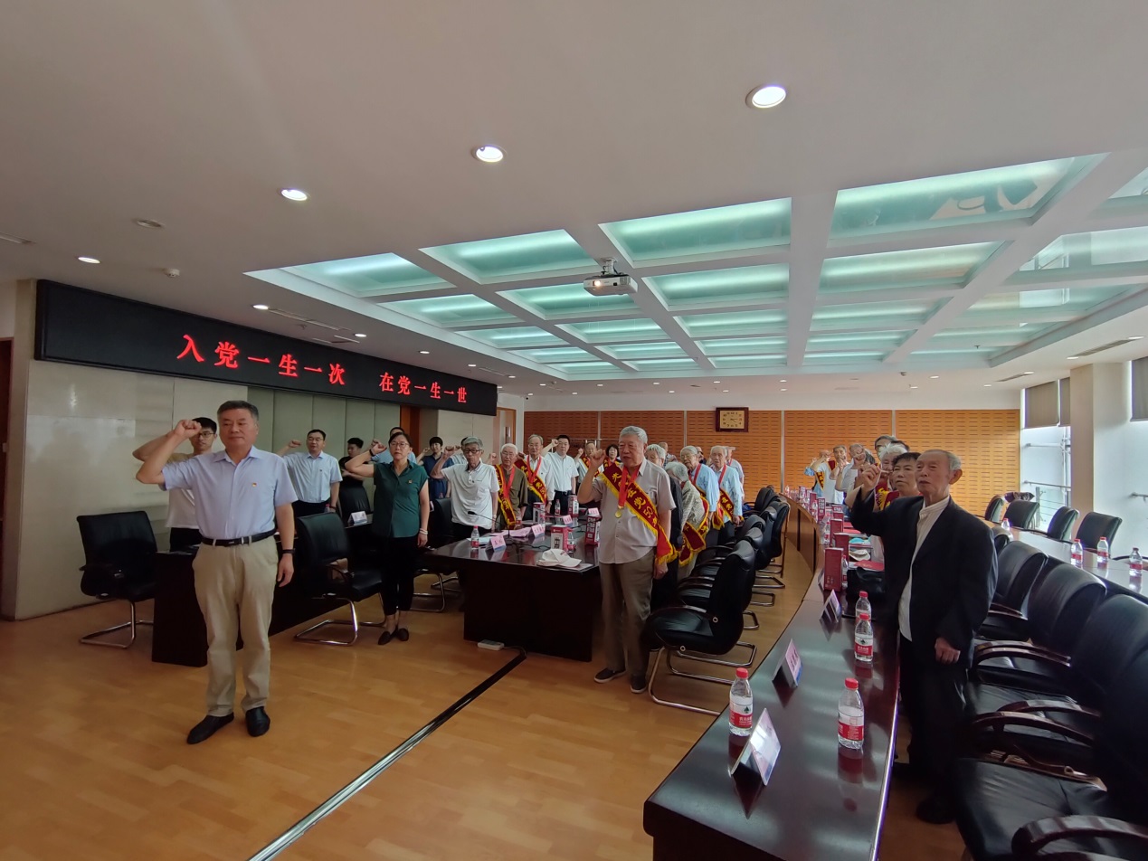 最后,由杨东坪领誓,与会的老党员们集体重温入党誓词。入党一生一次、在党一生一世。老党员们身披红色绶带,佩戴“光荣在党50年”纪念章,在重温入党誓词时声音依旧铿锵。会后,与会人员合影留念。