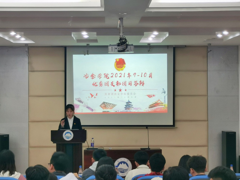 10月8日,冶金学院9-10月“请党放心·强国有我”主题团日答辩活动在学生活动中心214顺利举办。辅导员陈旭东、陈宝奇、梅馨予,团委学生干部以及答辩团支部评分代表参加本次答辩活动。